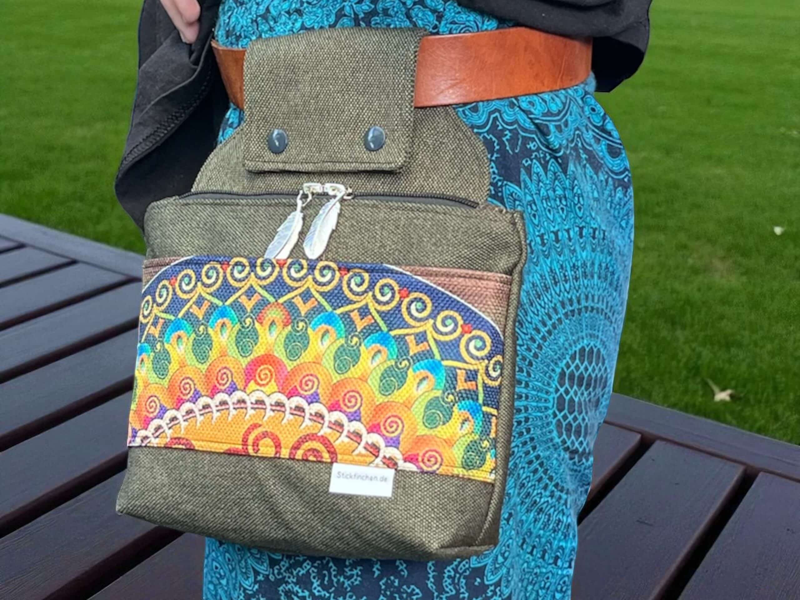 Diese hübsche Gürteltasche in Khaki bringt frischen Wind in deinen Alltag. Die bunte Fronttasche im Mandala-Design sorgt für gute Laune und macht sie zum echten Hingucker. Ob du durch den Park spazierst, durch die Station flitzt oder deinem Hund hinterherläufst, du siehst immer gut aus. Und hast alles dabei.
